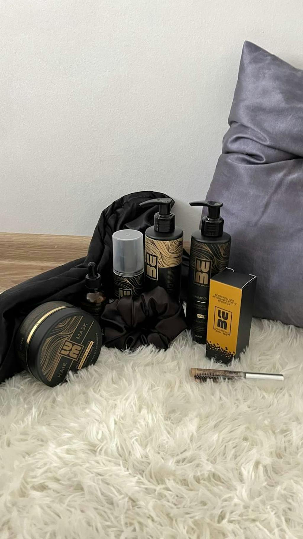 Perfect basic hair care. The kit includes all the necessary products for daily care. Accessories made of silk fabric - will bring pleasure every day.